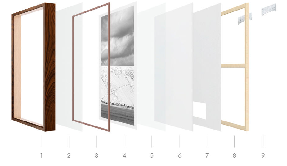Artistas e fotógrafos têm a liberdade de escolher a moldura de acordo com o tamanho de suas impressões feitas no processo de impressão Fine Art e a quantidade necessária.